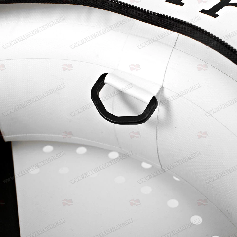 Fitted with a stainless steel D ring and 16 soft ergonomic grip handles, both on the top and bottom part of the buoy, allowing gripping the buoy comfortably in virtually any diving conditions and breathup style.