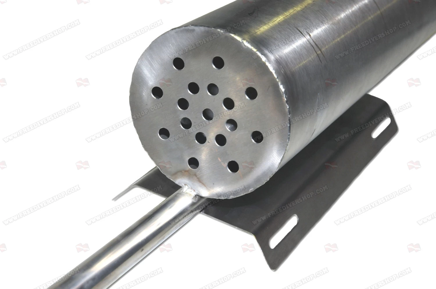 Equipped with a welded stainless steel d-ring & container for lift bag and a diving tank attachment plate.