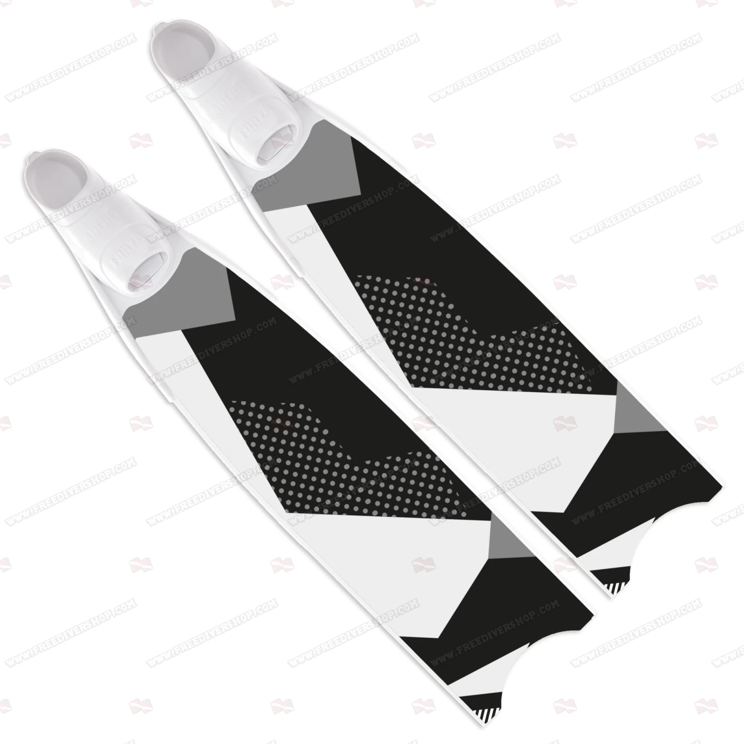 High quality limited edition freediving and spearfishing fins with Monochrome design, hand made blades from 100% carbon / fiberglass, processed under vacuum in molds.