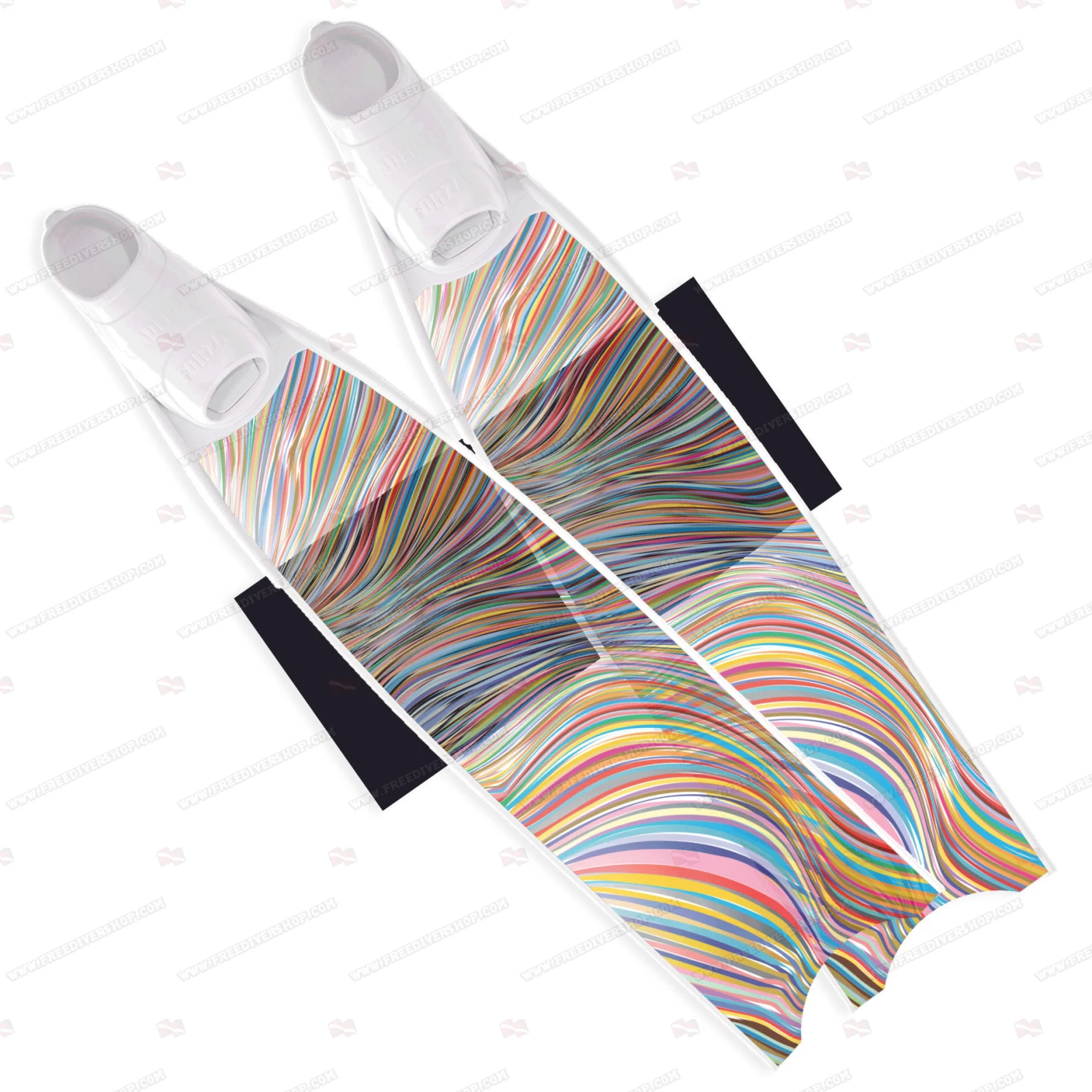 High quality semitranslucent limited edition Neon Rainbow freediving and spearfishing fins, hand made fiberglass blades, processed under vacuum in molds.