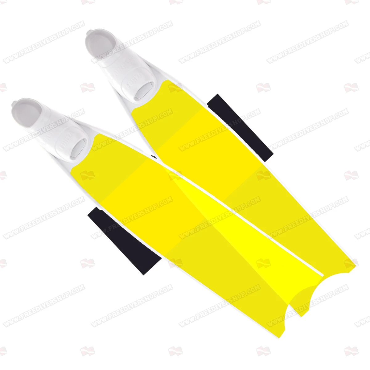 High quality semitranslucent limited edition Neon Yellow freediving and spearfishing fins, hand made fiberglass blades, processed under vacuum in molds.