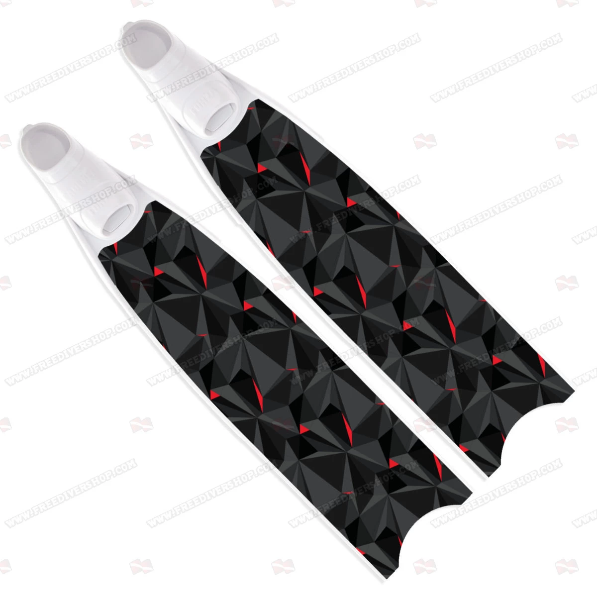 High quality limited edition freediving and spearfishing fins with Red Polygon design, hand made blades from 100% carbon / fiberglass, processed under vacuum in molds.